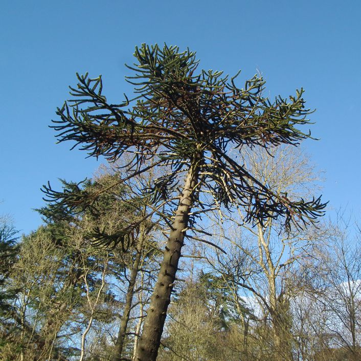 Conifers are woody plants with seeds less protected compared to flowering plants. They are less diverse than flowering plants, and their classification keeps changing with the development of genetic analysis. ‘Broadly’, most of our species belong to the Pine family (Pinaceae) with needle-like leaves and Cypress/Juniper family (Cupressaceae) with scale-like or flat leaves. The Pine family includes large groups like Firs, Spruces and Pines, as well as Cedars, which became iconic landscape trees in parks and gardens. The Cypress family includes ‘true’ Cypresses and Redwoods. Some of the oldest trees in the Pinetum are Giant Redwoods (Sequoiadendron giganteum) and Yews (Taxus baccata). We also have species from small and ancient families, including Maidenhair Tree (Ginkgo biloba), Monkey Puzzle (Araucaria araucana) and Plum Yew (Cephalotaxus harringtonia).
